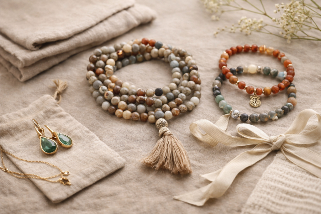 Malas, Halsketten und Armbänder aus Natursteinen,