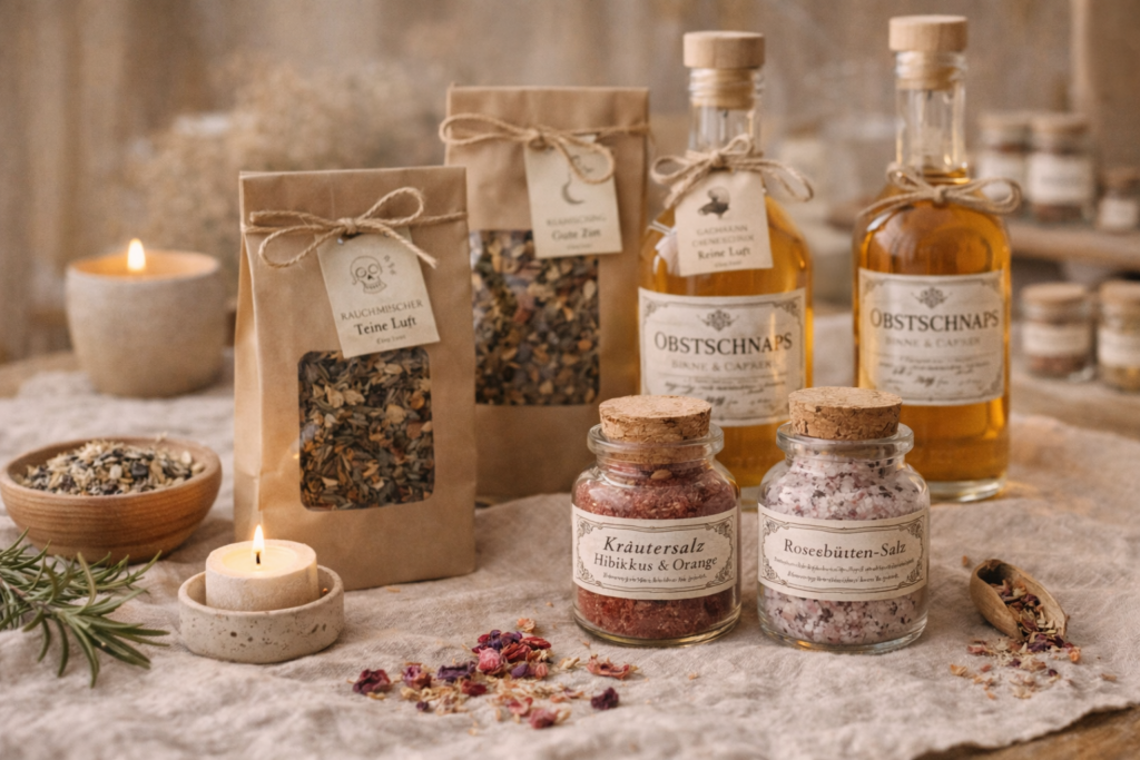 Tee- und Räuchermischungen, aromatisierte Salze, ausgewählte hochprozentige Spezialitäten…